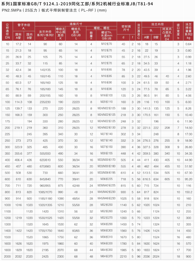 法兰标准表